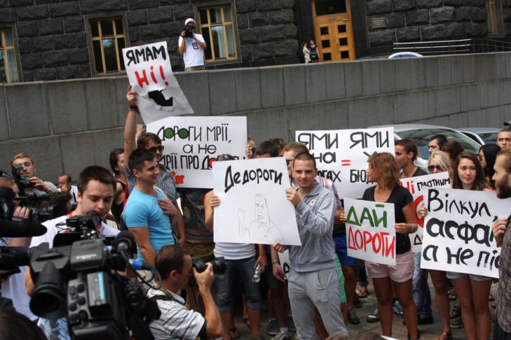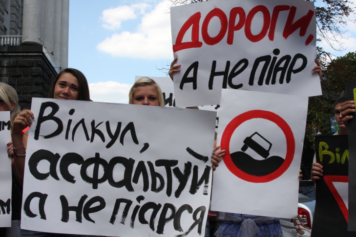 Митингующие заявили, что цель акции - «привлечь внимание общественности и чиновников к бедственному состоянию украинских дорог, которое никак не соответствует победным реляциям вице-премьера Александра Вилкула».