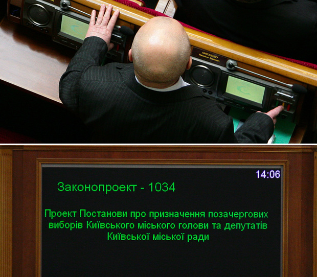 Во время голосования проекта постановления о назначении внеочередных выборов Киевского городского головы и депутатов Киевского городского совета (№ 1034) Михаил Мироненко (ПР) голосует за себя и другого депутата.