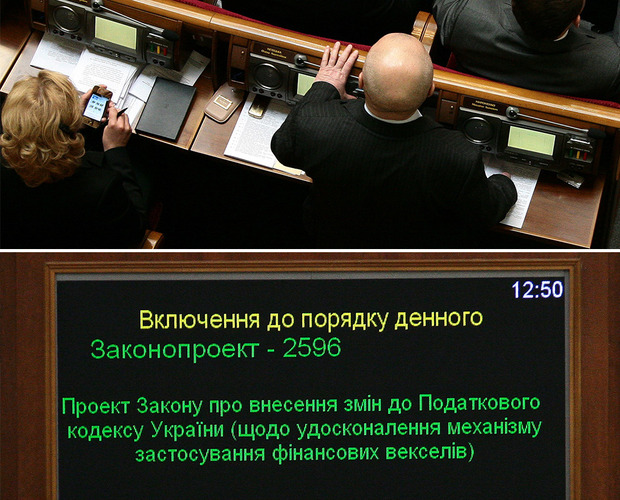 На фотографии ниже Михаил Мироненко (Партия регионов) голосует за Евгения Мураева (ПР), карта которого установлена на месте карточки Елены Нетецкой (ПР). Во время голосования законопроекта о внесении изменений в Налоговый кодекс Украины (№ 2596).