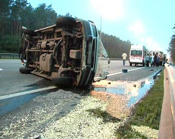 На Бориспольском шоссе легковушка перевернула микроавтобус и загорелась