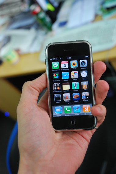 Примечательно, легальной продажи трубки iPhon на территории Украины и даже России нет. Равно как и легальной русскоязычной версии. Эти телефоны покупают в США или Европе, привозят к нам, где взламывают и программируют под русский язык. Потом на рынке или через интернет такую трубу можно купить за 800-1000 долл.