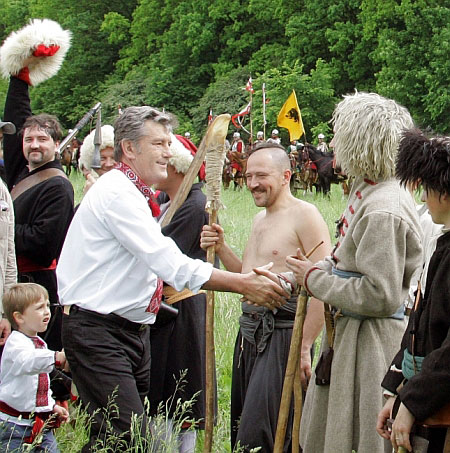 Вместе с наименьшим своим сыном, Тарасом, президент в этот день смотрел на драки, стрельбу и трупы. Не настоящие, к счастью.