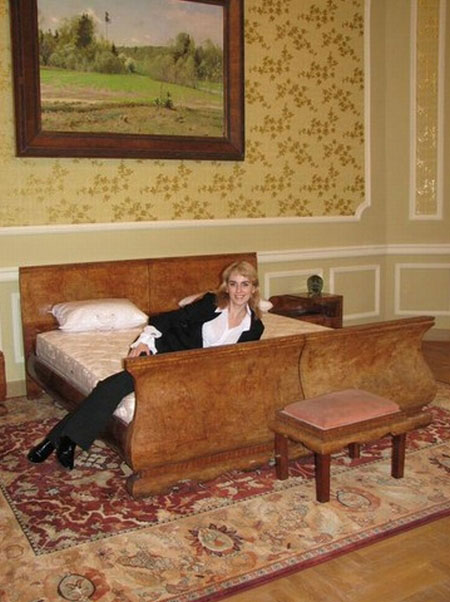 В спальне президента центральную позицию занимает огромная двуспальная мягкая и удобная кровать.