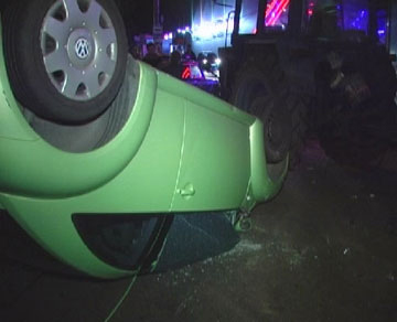 Водитель автомобиля "Фольксваген-Жук" не справился с управлением и врезался в припаркованный трактор "Оболонского-ШЕУ". От удара автомобиль перевернулся, водитель и пассажир отделались легкими травмами и от госпитализации отказались.