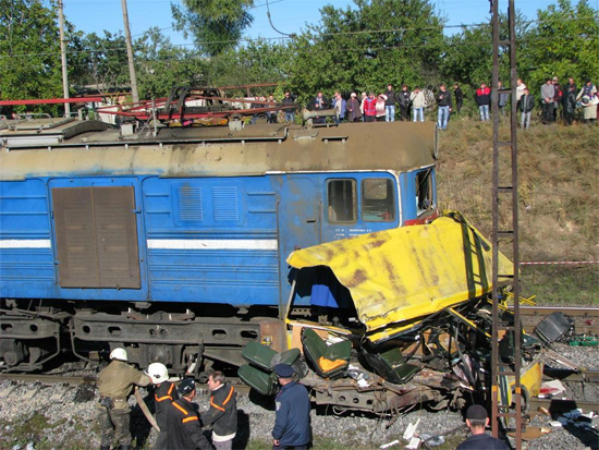 Во вторник утром в Днепропетровской области в пригороде Марганца маршрутный автобус столкнулся на переезде с поездом. Погибло 40 человек, 10 находятся в больнице. Автобус заглох на переезде при попытке переключения скоростей. Локомотив протянул автобус около 300 метров...