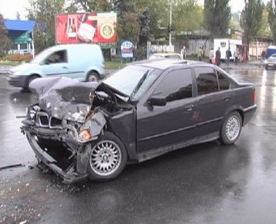 В результате аварии пострадала черная «БМВ», маршрутка же серьезных повреждений не потерпела.