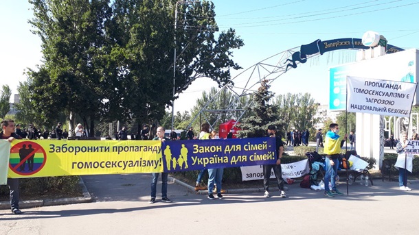В Запорожье в воскресенье, 20 сентября, впервые состоялась акция в поддержку ЛГБТ. Участников мероприятия пытались забросать яйцами и петардами, а у одного из трех задержанных изъято оружие, сообщает Нацполиция.