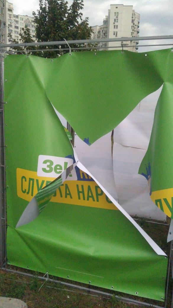 Конкуренты продолжают уничтожать агитационные палатки партии «Слуга народа».