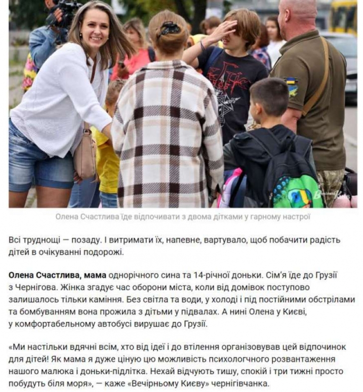 На сайті "Вечірній Київ" 19 липня 2022 року опубліковано коментар Ганни Швиденко про принцип відбору дітей для відпочинку в Грузії: