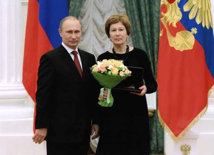 На фото: керівниця ДЦ ФДБУ «НДЦ «Планета» Любов Крамарева під час отримання державної нагороди від російського диктатора
