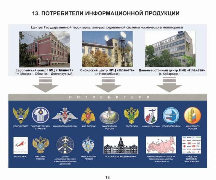 «Планета» працює з понад 50 постійними споживачами даних дистанційного зондування. Серед них, в першу чергу, підрозділи міноборони і генштабу рф (в тому числі, північний флот тощо), служби мнс рф, оперативні і науково-дослідні організації.