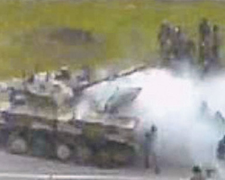 «Вечером колонна бронетехники поехала с Ходынского поля через нашу улицу, – заявил один из свидетелей инцидента. – Я вооружился камерой мобильного телефона и снимал все из окна седьмого этажа… Вдруг я услышал сильный хлопок, от которого задрожали окна. Я даже испугался, что они побьются...».