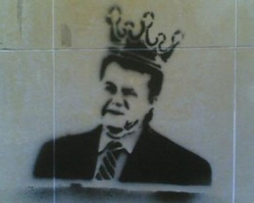 На фасадах донецких домов появились граффити, изображающее президента Украины Виктора Януковича в короне.