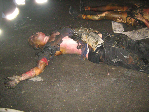 «Следствие отказывалось рассматривать политическую версию, - подчеркнул адвокат Александр Сойников. – Более того, они пытались исключить и версию о поджоге. Хотя экспертизы показали, что возгорание произошло из-за наличия в помещении высокотоксичного горючего вещества, а погибшие в основном скончались от удушья. На выходе температура горения достигала 1000 градусов».