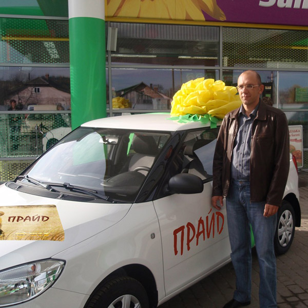 По итогам акции, приуроченной ко Дню автомобилиста, сеть автозаправочных станций WOG провела розыгрыш призов. Две тысячи зарегистрированных участников WOG-овской программы лояльности «ПРАЙД» получили 1 000 000 бонусов (по 500 подарочных бонусов каждый), 165 клиентов – подарочные сертификаты на покупку бытовой техники номиналом от 250 до 3000 гривен. А житель Тернополя Василий Брыкайло выиграл главный приз – автомобиль Skoda Fabia от компании Еврокар.