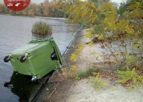 В Киеве неизвестные бросили контейнеры с мусором в Днепр