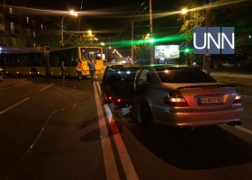 В Киеве произошло ДТП с участием троллейбуса, провода которого "обвили" Mercedes