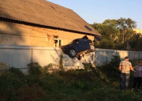 В Черновцах полицейский на BMW протаранил ограждение и повис на заборе