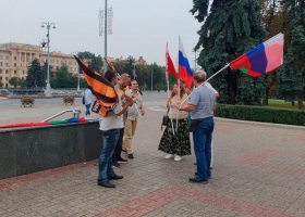 На центральной площади Минска заметили людей с российскими и "георгиевскими" флагами