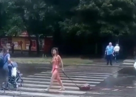 В Запорожье полуголая девушка приставала к мужчинам на улице