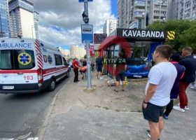В Киеве легковушка влетела в кофейню на остановке: есть пострадавшие