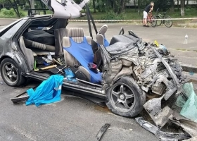 В Киеве Mercedes вылетел на встречную и врезался в маршрутку: серьезно травмированы три человека