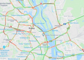 Центр Киева и выезды с левого берега утром во вторник "покраснели" от пробок (карта)
