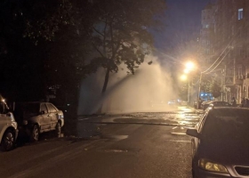 В Киеве на Подоле из-за прорыва трубы образовался новый десятиметровый "фонтан"