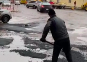 Херсонские дорожники укладывали асфальт под дождем прямо в лужи