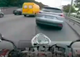 В Киеве водитель и мотоциклист устроили разборки на скорости и попали на видео