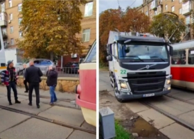 Водители мусоровоза и трамвая не поделили дорогу в Киеве и подрались