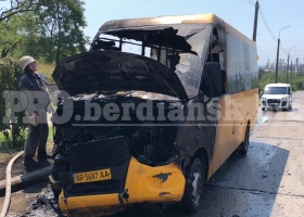 В Бердянске во время движения загорелась маршрутка с пассажирами