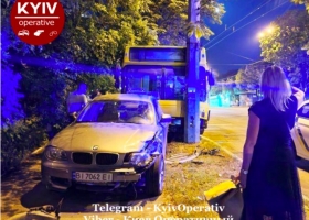 В Киеве автобус протаранил BMW, пока водитель ходил за кофе