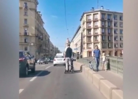 В Питере отец на гироскутере вез коляску с малышом по проезжей части