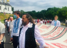 В Чернигове развернули 200-метровый Рушник единства, изготовленный в технике забойки
