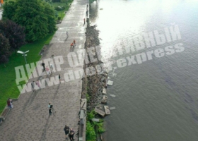В Днипре дождь разрушил и смыл в реку часть набережной