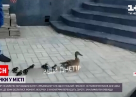 Утка с утятами остановила движение по центральному проспекту в Днипре