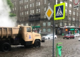 В Харькове коммунальщики во время ливня асфальтировали дороги