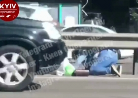 В Киеве женщина переползала автомагистраль в час пик на коленях