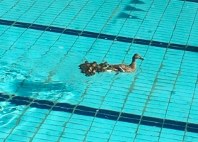 Во Львове в бассейн спорткомплекса заплыла утка с утятами