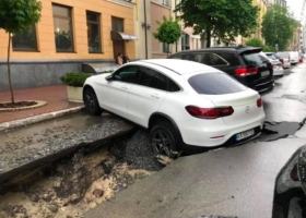 В Киеве автомобиль влетел на летнюю площадку Макдональдс, чудом никто не пострадал