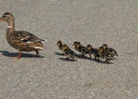 Утка с утятами "по правилам" перешла дорогу в Киеве: видео позабавило сеть