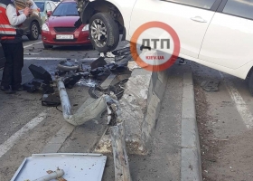 В Киеве авто на скорости сбило велосипедиста и застряло на отбойнике