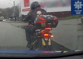 "Сумел удивить": в Киеве водитель мотоцикла закрыл госномер женским нижним бельем и получил штраф