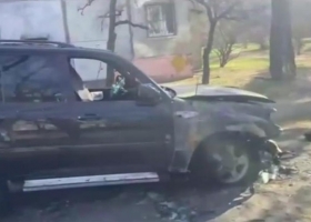 В Киеве сожгли паркующийся на газоне внедорожник