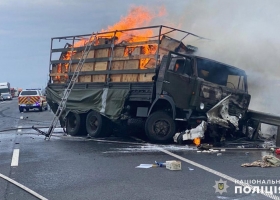 На Хмельнитчине в результате ДТП загорелся военный "КамАЗ": погибли два человека