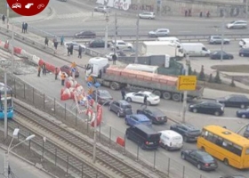 В Киеве из-за ДТП на Индустриальном мосту образовался гигантский затор: карта
