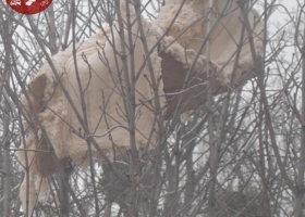 В Киеве выбросили в окно диван. Он застрял на дереве над головами у прохожих