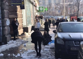 В центре Киева на девушку упала глыба льда. Она потеряла сознание