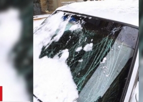 Во Львове снежная лавина упала с крыши и разбила автомобиль. Пешеходы отделались испугом